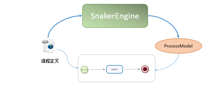 流程定义文件以snaker作为后缀名,实际上是一个xml文件,流程引擎负责解析xml文件并且转换为